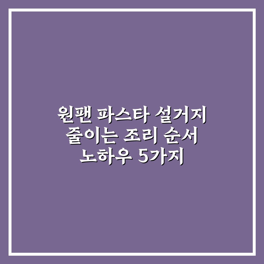 • 원팬 파스타 설거지 줄이는 조리 순서 노하우 5가지 핵심가이드