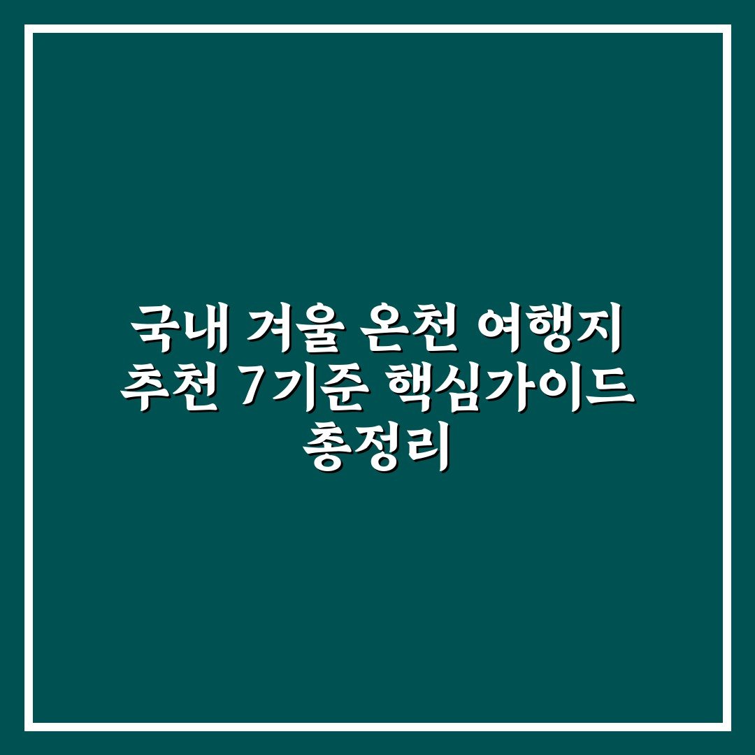 • 국내 겨울 온천 여행지 추천 7기준 핵심가이드 총정리