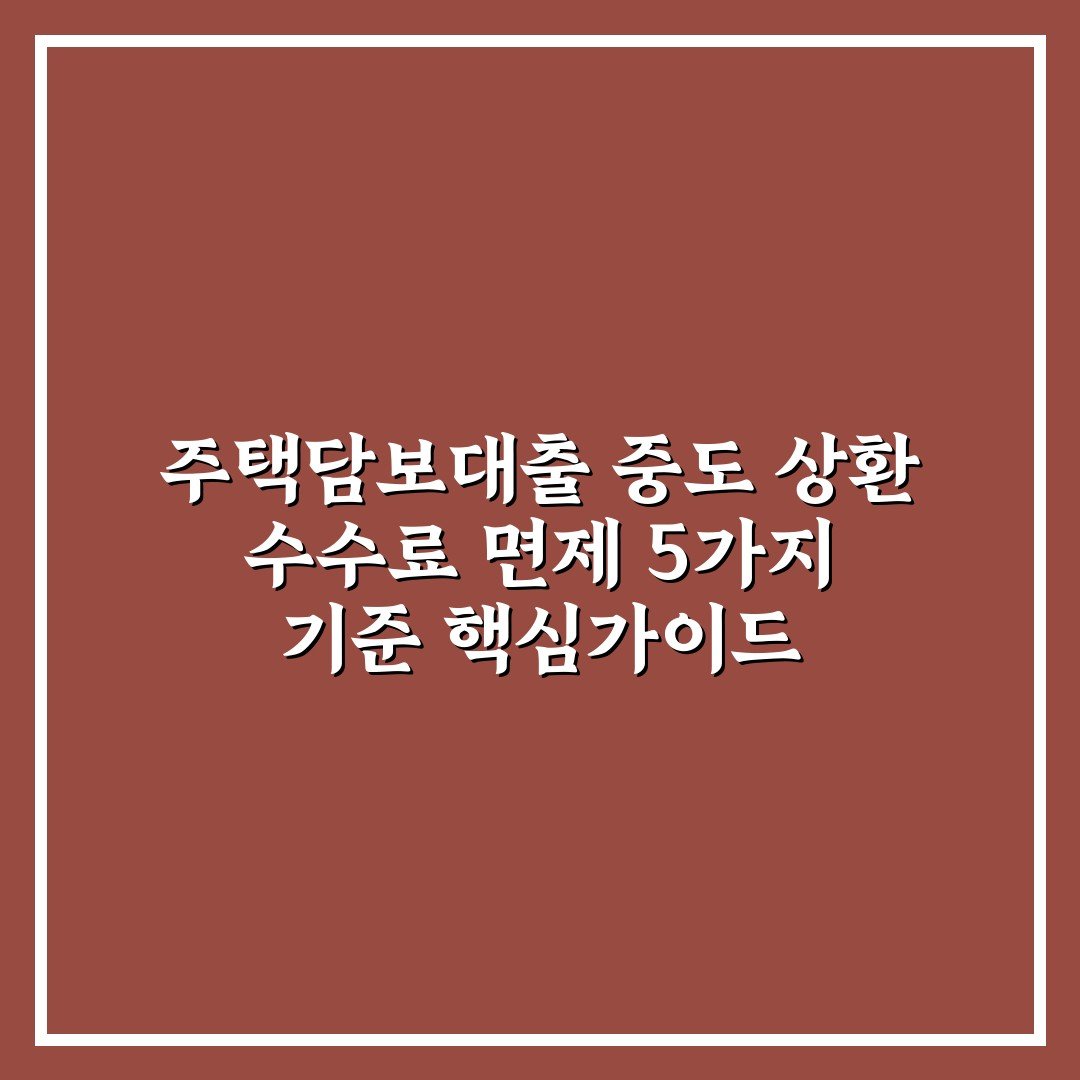 주택담보대출 중도 상환 수수료 면제 5가지 기준 핵심가이드 2026년 04월 11일 작성자: 인포 주택담보대출 중도 상환 수수료 면제 조건과 5가지 주요 기준을 쉽게 이해하고 적용 방법을 확인할 수 있습니다.