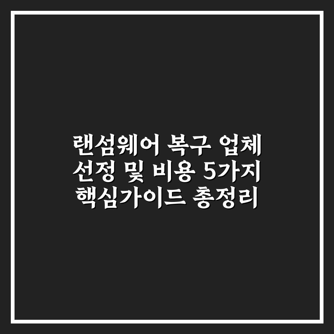 랜섬웨어 복구 업체 선정 및 비용 5가지 핵심가이드 총정리