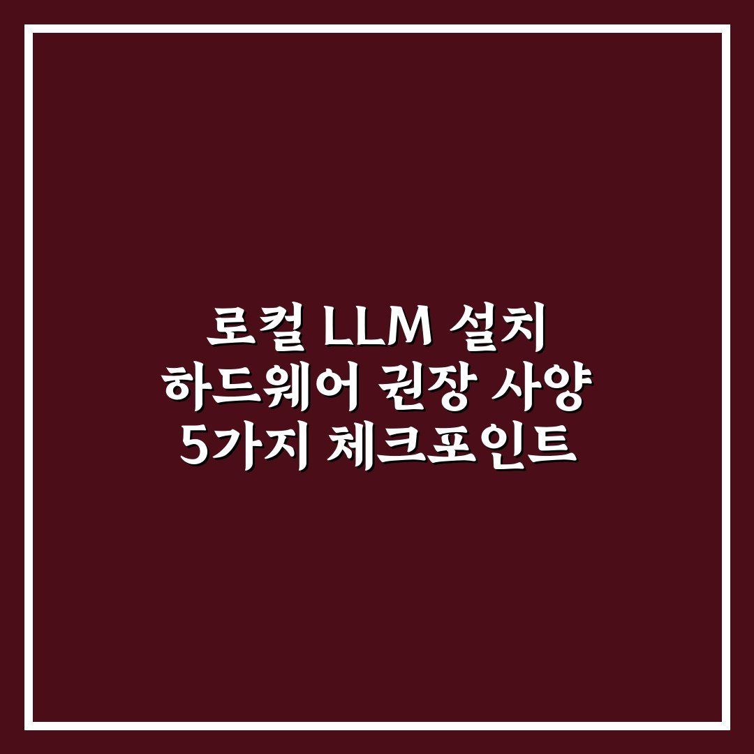로컬 LLM 설치 하드웨어 권장 사양 5가지 체크포인트 총정리 2026년 04월 02일 작성자: 인포 로컬 LLM 설치 하드웨어 권장 사양을 5가지 핵심 체크포인트로 정리해 최적의 환경 구성을 위한 필수 정보를 제공합니다.