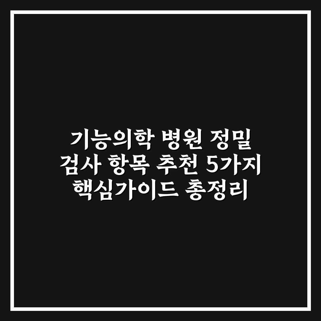 • 기능의학 병원 정밀 검사 항목 추천 5가지 핵심가이드 총정리