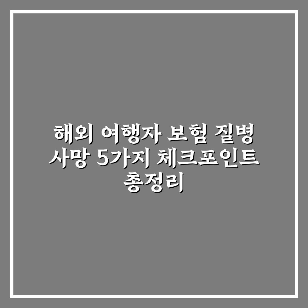 해외 여행자 보험 질병 사망 5가지 체크포인트 총정리 2026년 03월 30일 작성자: 인포 해외 여행자 보험 질병 사망 시 꼭 확인해야 할 5가지 핵심 포인트를 정리해 안전한 여행 준비에 도움을 드립니다