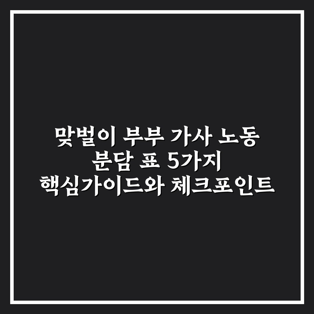 맞벌이 부부 가사 노동 분담 표를 통해 효율적인 역할 배분 방법과 핵심 체크포인트를 확인하고 균형 잡힌 가사 분담 전략을 세울 수 있습니다