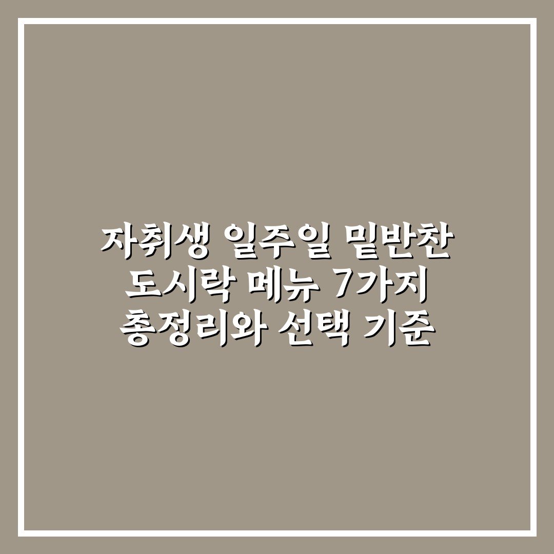 자취생 일주일 밑반찬 도시락 메뉴 7가지 총정리와 선택 기준 2026년 03월 26일 작성자: 인포 자취생 일주일 밑반찬 도시락 메뉴를 효율적으로 준비하는 방법과 7가지 추천 반찬을 소개해 실용적인 식단 계획에 도움을 드립니다