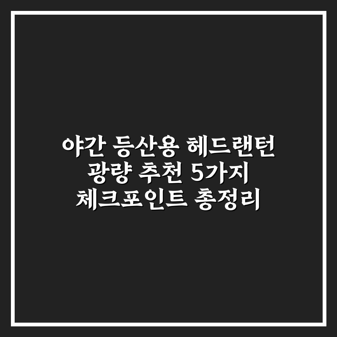 야간 등산용 헤드랜턴 광량 추천 5가지 체크포인트 총정리 2026년 03월 31일 작성자: 인포 야간 등산용 헤드랜턴 광량 추천을 중심으로 안전하고 효율적인 선택 기준 5가지를 자세히 알려드립니다.