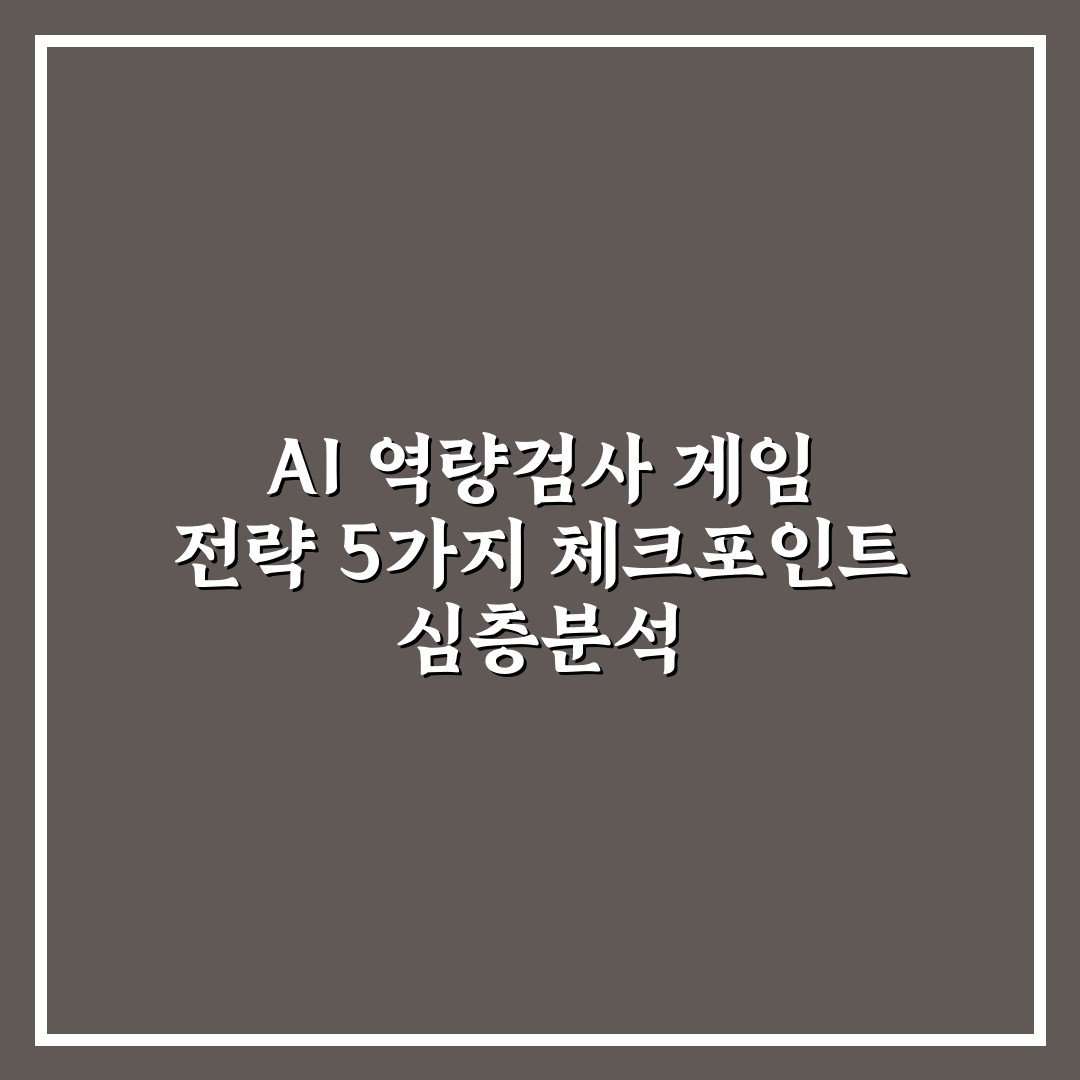 AI 역량검사 게임 전략 5가지 체크포인트 심층분석 2026년 04월 16일 작성자: 인포 AI 역량검사 게임 전략의 핵심 5가지 체크포인트를 심층 분석해 효과적인 준비 방법과 실전 적용 노하우를 제공합니다.