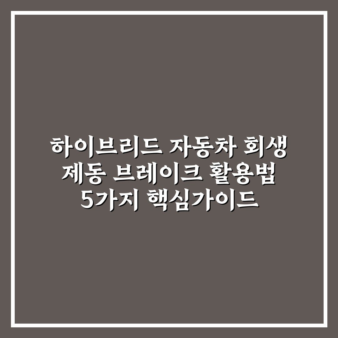• 하이브리드 자동차 회생 제동 브레이크 활용법 5가지 핵심가이드 총정리