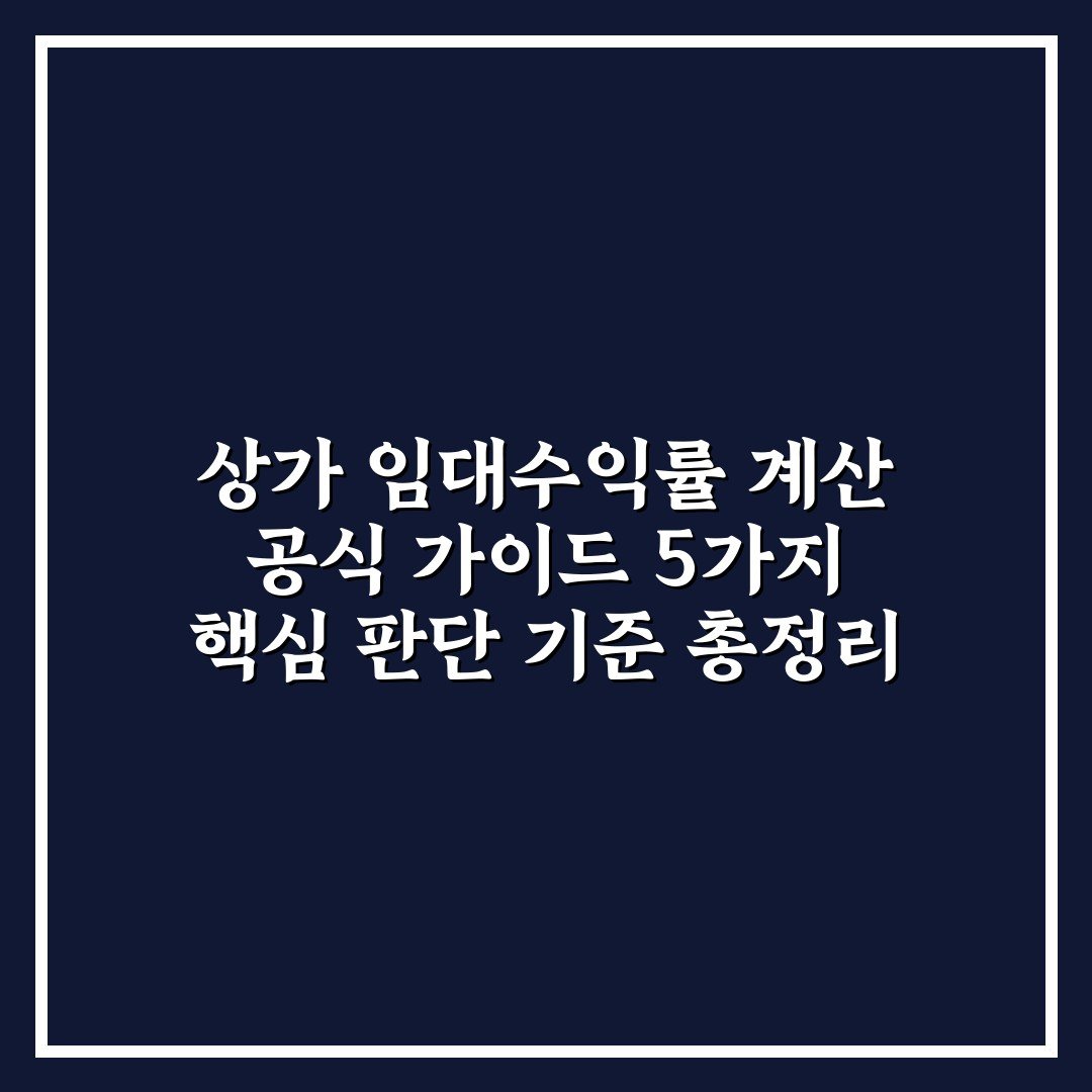 상가 임대수익률 계산 공식 가이드를 통해 정확한 수익 분석과 함께 핵심 판단 기준 5가지를 체계적으로 이해할 수 있습니다