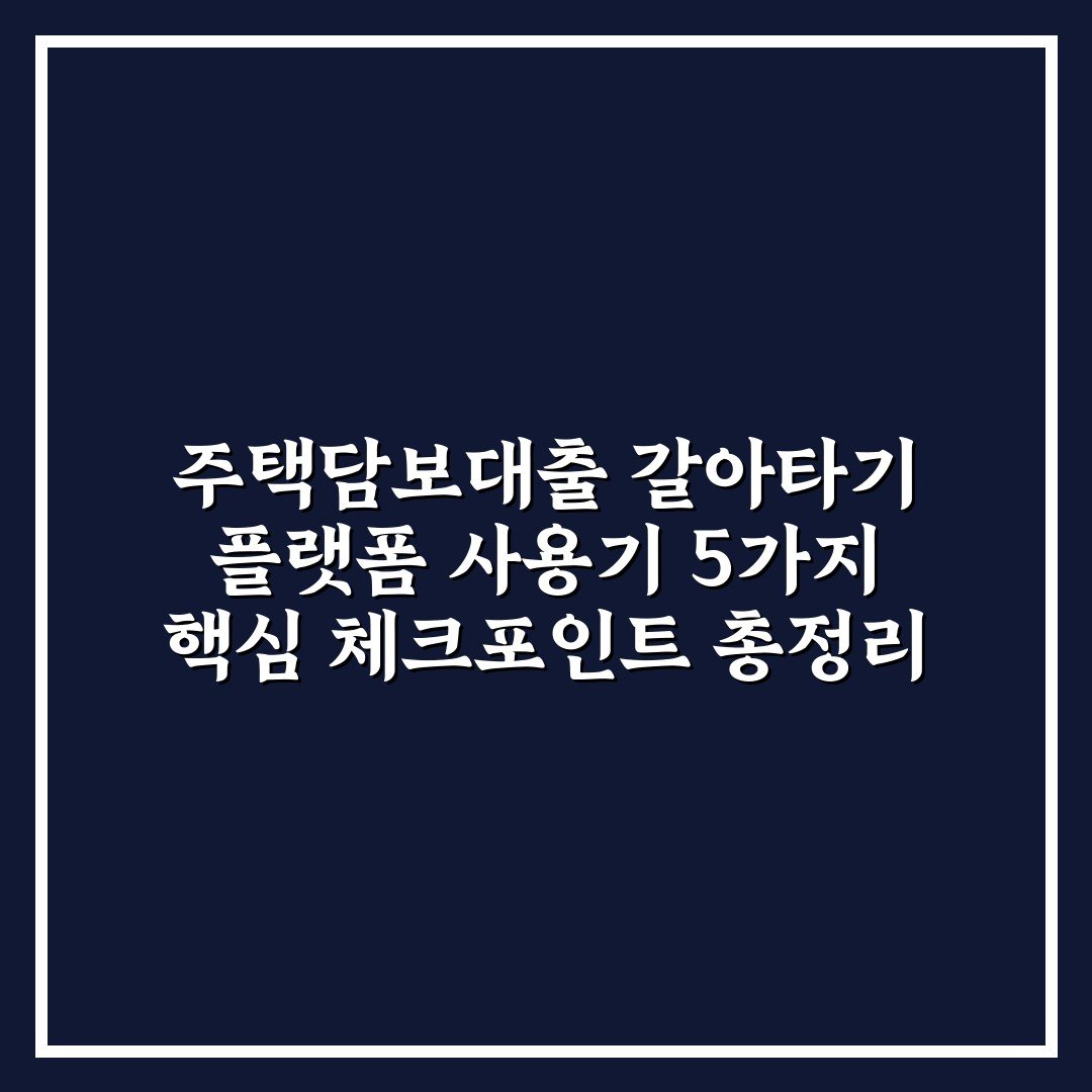 주택담보대출 갈아타기 플랫폼 사용기 5가지 핵심 체크포인트 총정리