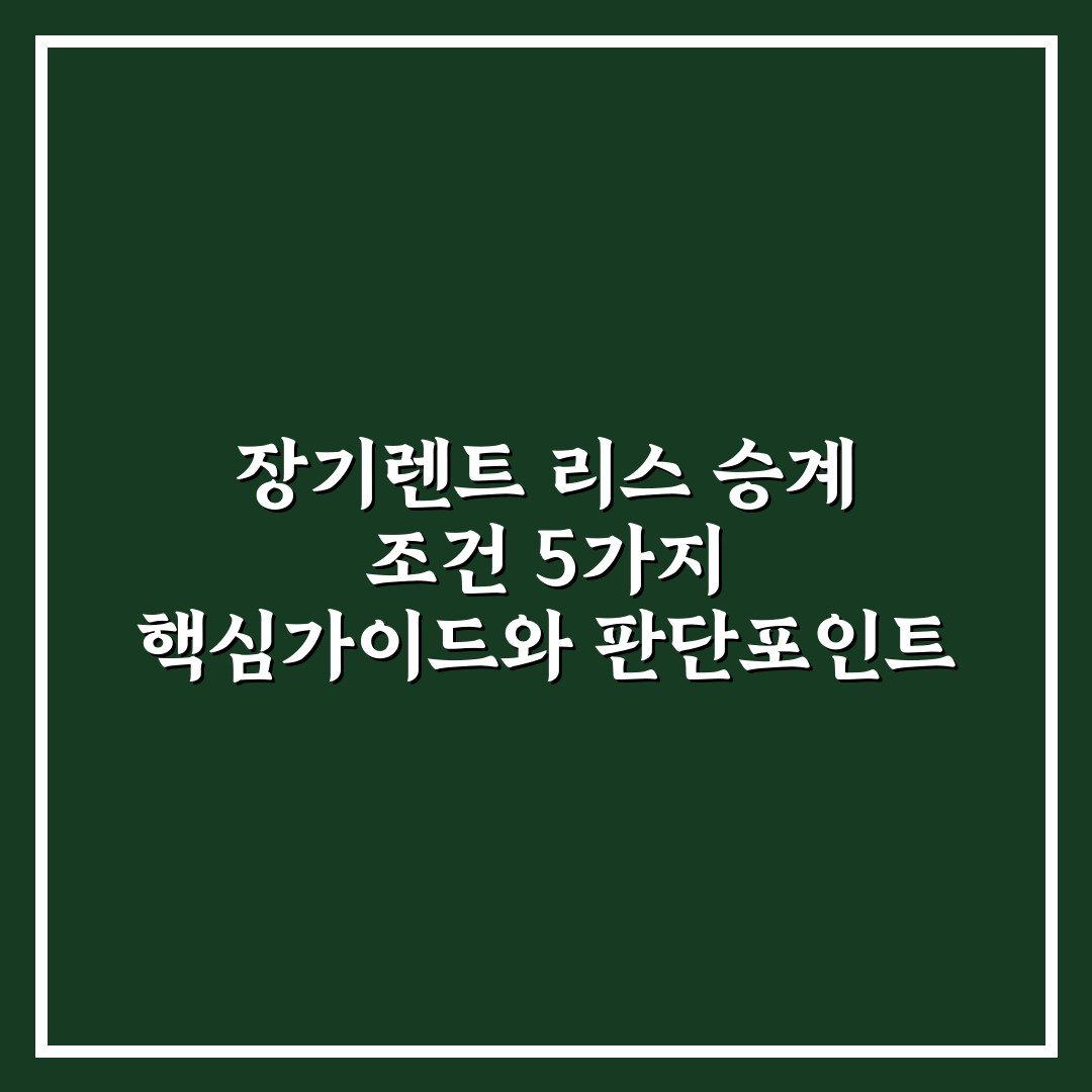장기렌트 리스 승계 조건 5가지 핵심가이드와 판단포인트 총정리 2026년 04월 02일 작성자: 인포 장기렌트 리스 승계 조건별 핵심 가이드와 판단 포인트를 통해 신중한 결정에 필요한 정보를 쉽고 빠르게 확인할 수 있습니다
