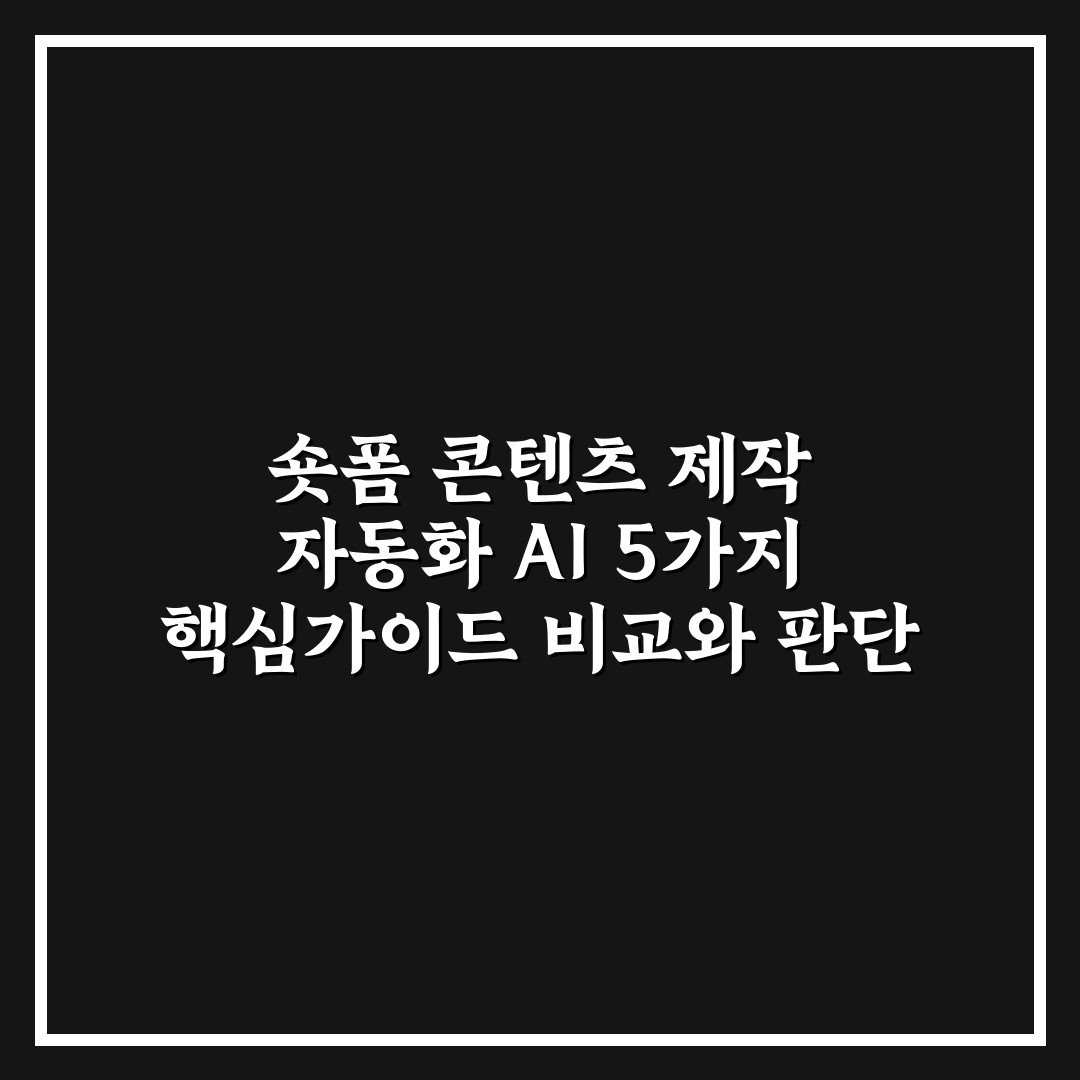 숏폼 콘텐츠 제작 자동화 AI 5가지 핵심가이드 비교와 판단 기준 2026년 04월 12일 작성자: 인포 숏폼 콘텐츠 제작 자동화 AI 5가지 핵심가이드를 비교하며 각 도구의 특징과 선택 기준을 명확하게 안내합니다.