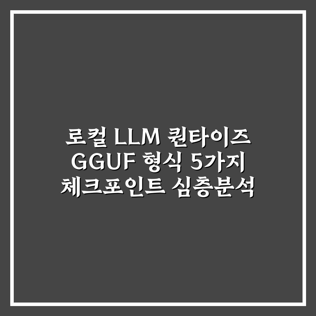 로컬 LLM 퀀타이즈 GGUF 형식 5가지 체크포인트 심층분석 2026년 04월 23일 작성자: 인포 로컬 LLM 퀀타이즈 GGUF 형식의 5가지 주요 체크포인트를 분석해 최적화 방법과 적용 시 유의사항을 상세히 안내합니다